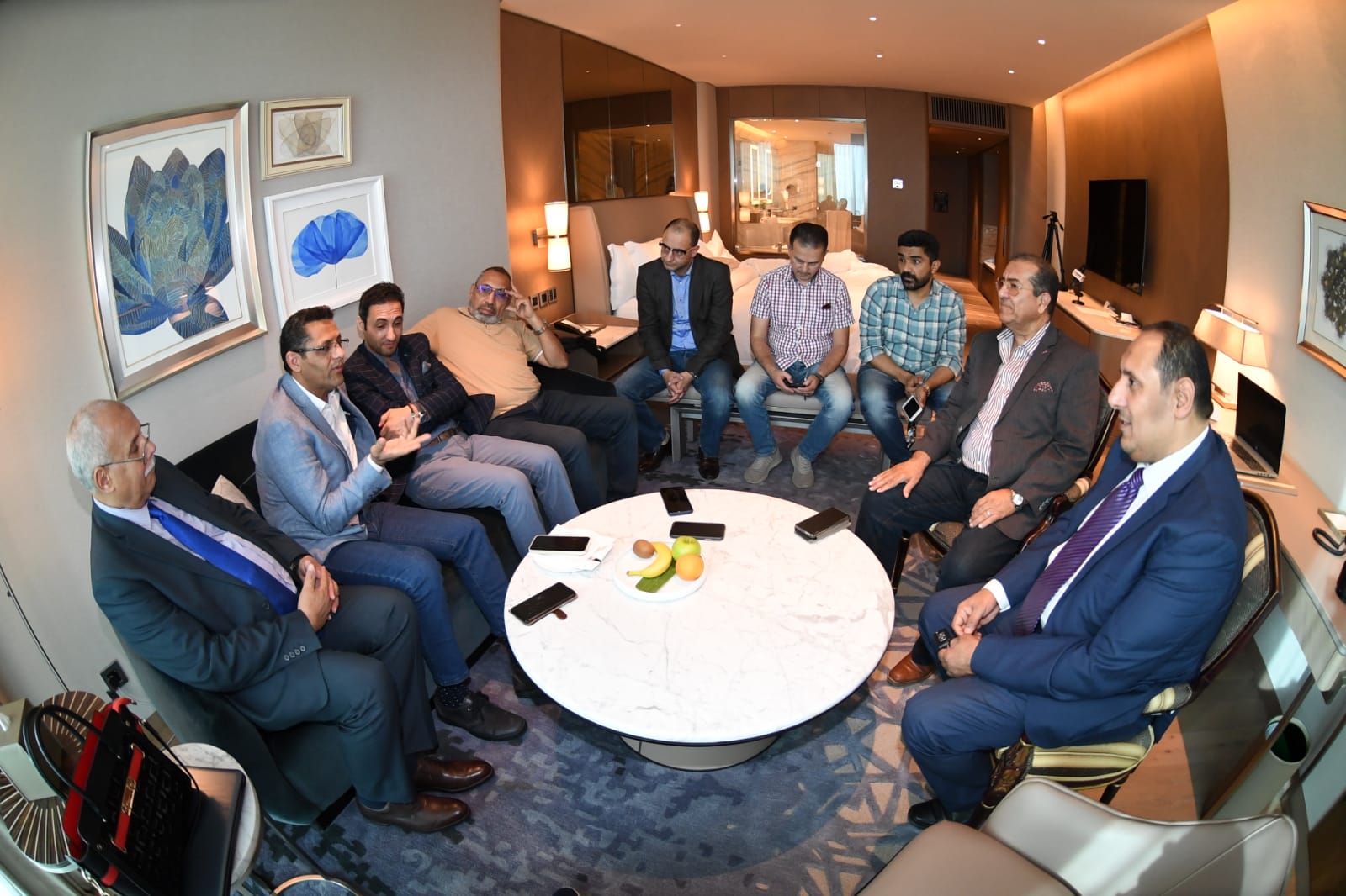 ناقش النقيب معهم قضايا المهنة ومشاكل الزملاء واقتراحاتهم لحل أزمات المهنة، كما تطرق اللقاء لبحث حل أزمة مستحقات بعض الزملاء لدى عدد من المؤسسات التي يعملون بها.