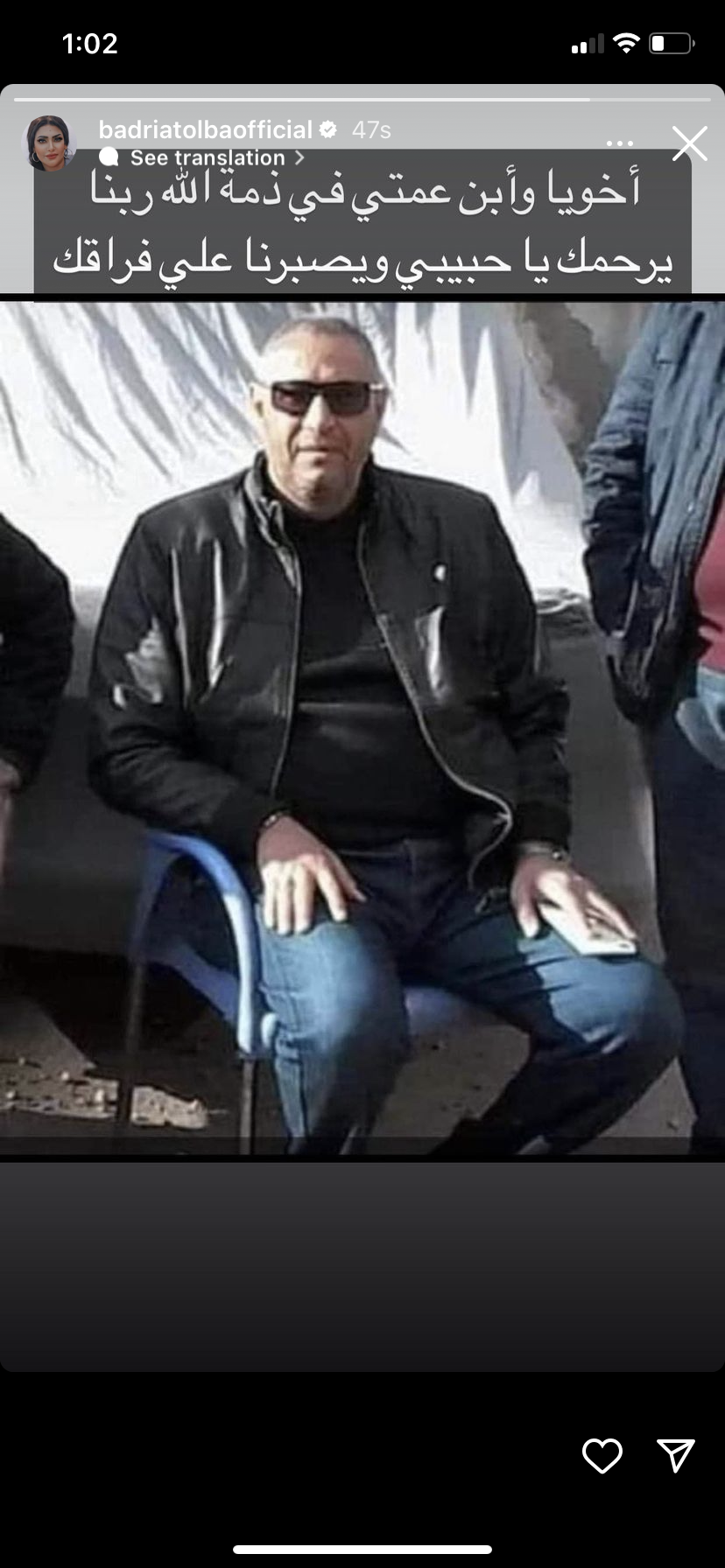 أعلنت الفنانة بدرية طلبة وفاة ابن عمتها عبر خاصية ستور بحسابها بتطبيق إنستجرام.