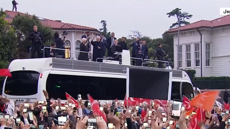 واحتفل الرئيس التركي رجب طيب أردوغان، اليوم الأحد، مع أنصاره مع قرب إعلان فوزه بالانتخابات الرئاسة التركية، من شرفة منزله في اسطنبول.
