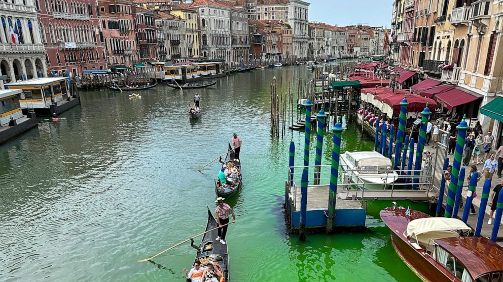 بدأت الشرطة في مدينة فينسيا الإيطالية تحقيق في مصدر السائل الأخضر الفسفوري الذي ظهر يوم الأحد في القناة الكبرى بالمدينة، وسط تكهنات بأن سبب ذلك هو احتجاجات المتظاهرين على المناخ في إيطاليا.