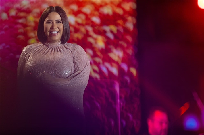 و غنت شيرين عبد الوهاب على المسرح جزء من أغنيتها؛ بيعاملني بطيبة وإحساس بيدلعني قدام الناس ".