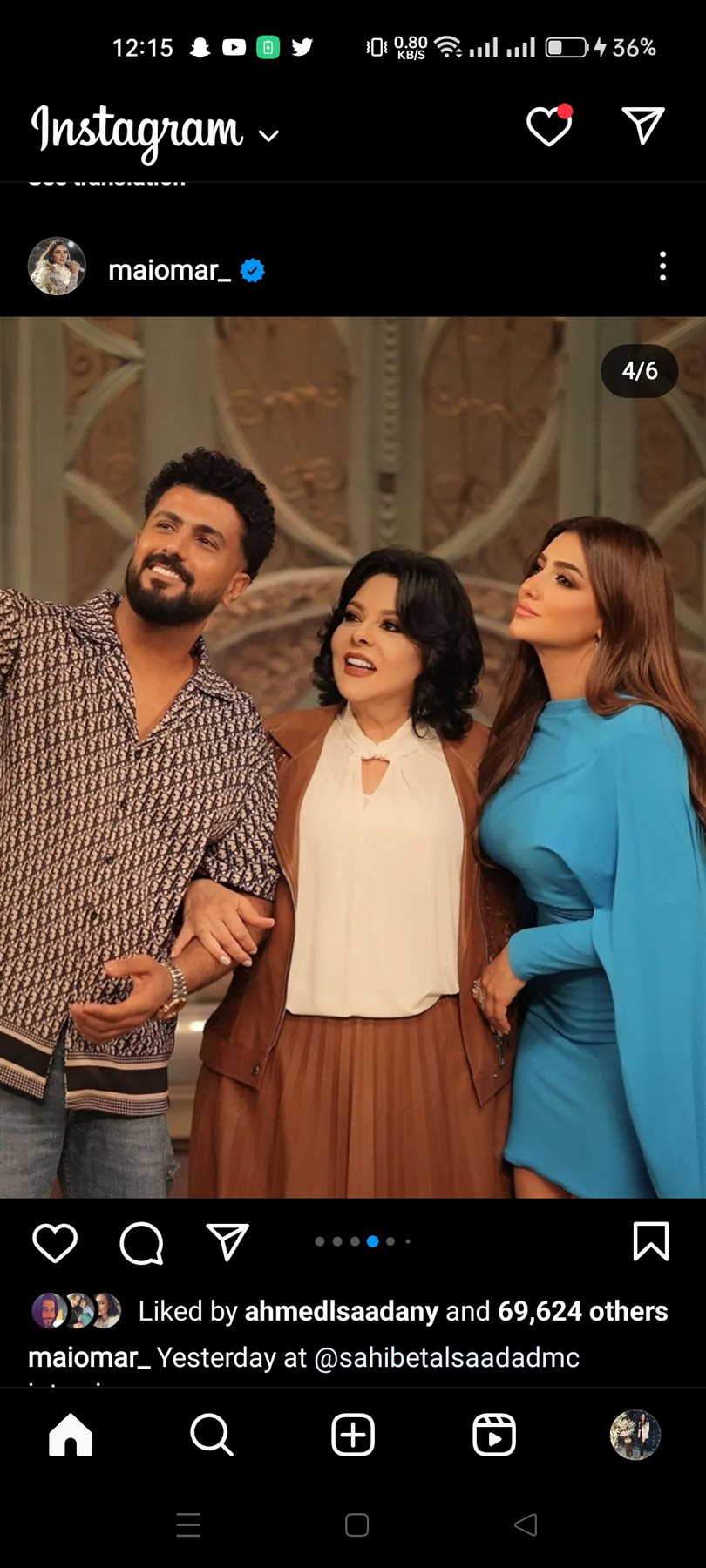 شاركت الفنانة مي عمر متابعيها عدة صور جديدة لها من حلقتها ببرنامج صاحبة السعادة رفقة الفنانة إسعاد يونس عبر صفحتها الرسمية علي موقع التواصل الاجتماعي لتبادل الصور والفيديوهات "إنستجرام".