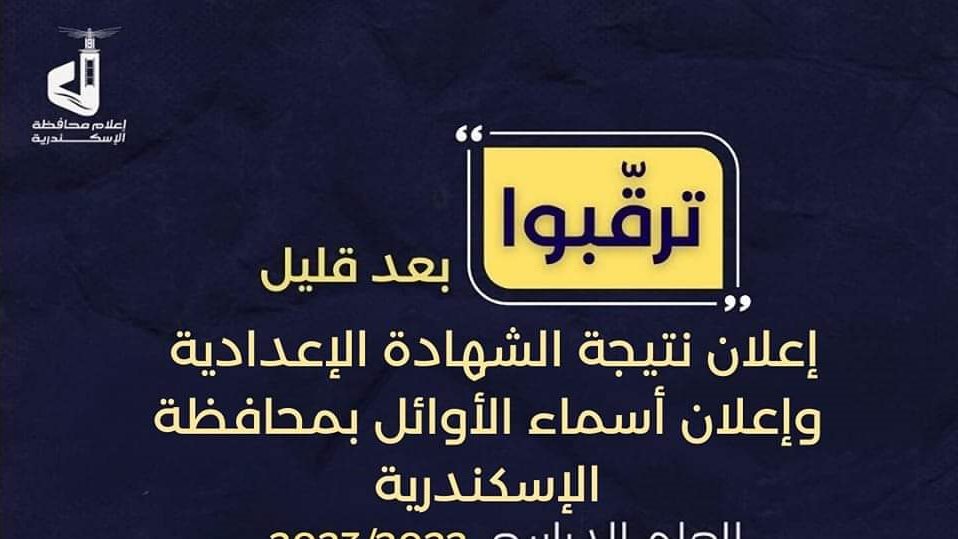 اعتمد اللواء محمد الشريف محافظ الإسكندرية، نتيجة الشهادة الإعدادية بالمحافظة للعام الدراسي 2023 / 2022، حيث بلغ عدد المتقدمين للشهادة الإعدادية 103 ألفا و119 طالبا وطالبة، وذلك بحضور الدكتور عربي أبوزيد مديرية التربية والتعليم بالإسكندرية.