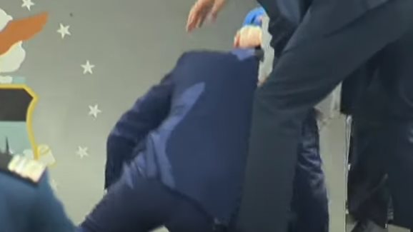 وتعرض الرئيس الأميركي جو بايدن، الخميس، لحادث سقوط على المنصة خلال مشاركته في تخريج طلاب من القوات الجوية.