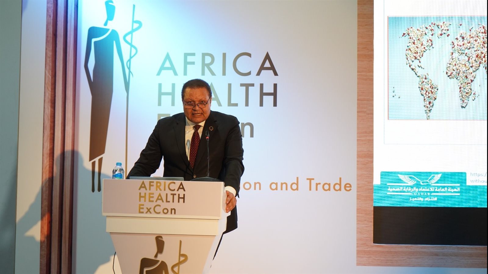 جاء ذلك خلال كلمته الافتتاحية للجلسة العلمية الأولى التي نظمتها الهيئة العامة للاعتماد والرقابة الصحية، ضمن فعاليات ملتقى صحة أفريقيا Africa Health ExCon 2023 ، بعنوان: "تطبيق معايير جودة الرعاية الصحية وأثرها على الانفاق الصحي '' والتي ناقشت التجربة المصرية في تطبيق معايير جودة الرعاية الصحية كمكون رئيسي لنظام التأمين الصحي الشامل وأثر ذلك على مخرجات الخدمة الصحية ومعدل الانفاق الصحي.