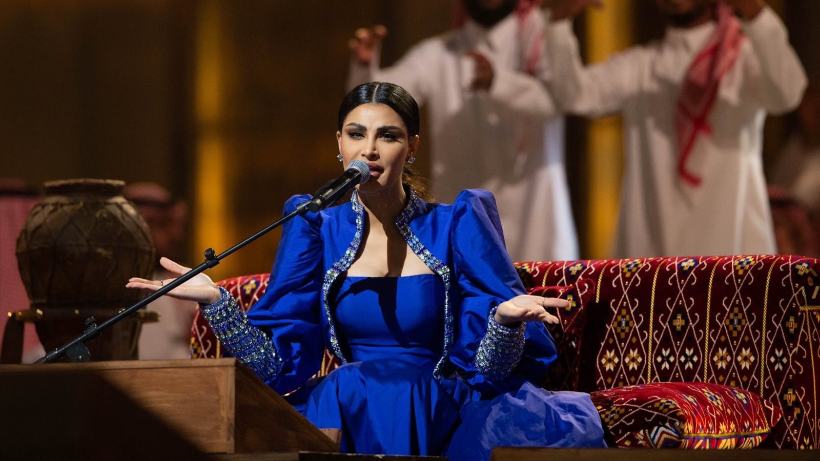 ظهرت أميمة طالب، في الحفل بفستان أزرق طويل، وقدمت الجزء الأول من الحفل، الذي اختتمه الفنان عبادي الجوهر.
