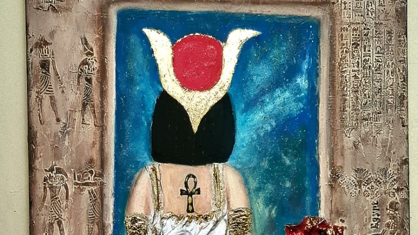 ويضم المعرض حوالي ٧٥ لوحة بخامات مختلفة مثل الخشب ، الألوان الزيتية، الاكريلك، الوان المايكا ، الریزن والميكس ميديا .