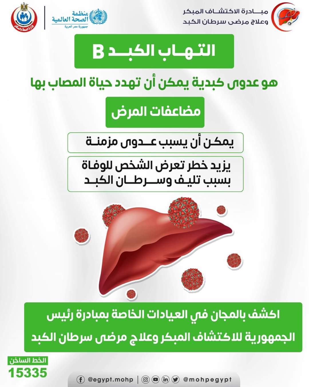 وقالت وزارة الصحة والسكان أن التهاب الكبد الفيروسي B هو عدوى تهدد حياة الشخص المصاب بها، وتعرضه لمضاعفات خطيرة.