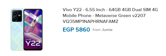 ويتوفر هاتف فيفو Vivo Y22 في السوق المصرية بسعر يبدأ من 5 آلاف و 860 جنيها مصريا، علما بأن السعر يختلف حسب النسخة وأيضا حسب المتجر.