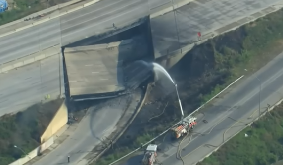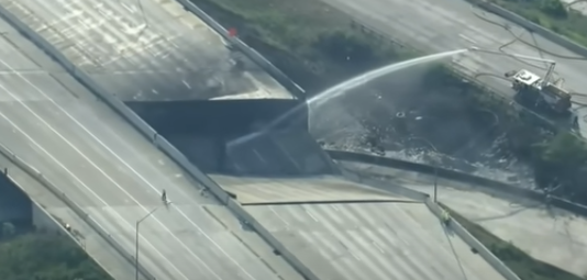 كمان أن الطريق المنهار علي اثر الحريق سيحتاج الي بعض الوقت لمعالجته، لان الجزيء المنهار يعتبر الطريق الشرياني للرئيس وسيمتد شمالًا وجنوبيًا على طول الساحل الشرقي للولايات المتحدة.