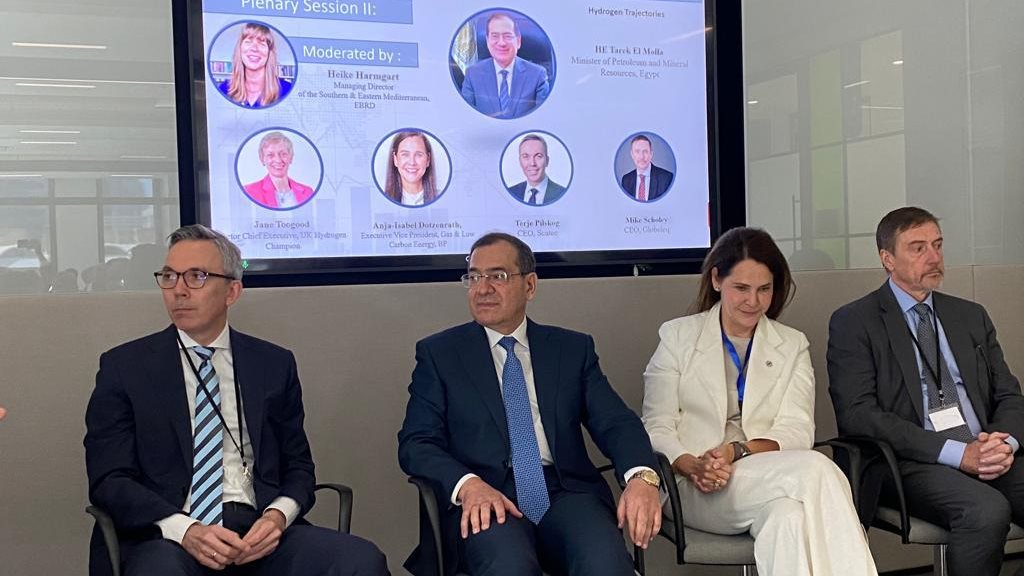 شارك المهندس طارق الملا وزير البترول والثروة المعدنية كمتحدث رئيسى فى جلسة حوارية بعنوان "مسارات الهيدروجين" ضمن فعاليات البعثة المصرية للترويج للاستثمار الأخضر فى العاصمة البريطانية لندن، وضمت الجلسة كلاً من جين توجود الراعى الاستراتيجى الحكومى لاقتصاد الهيدروجين فى المملكة المتحدة والرئيس التنفيذى لقطاع التقنيات المساعدة بشركة جونسون ماتى، وتيرييه بيلسكوج الرئيس التنفيذى لشركة سكاتك النرويجية، وآنيا إيزابيل نائب الرئيس التنفيذى للغاز والطاقة منخفضة الكربون فى شركة بى بى، ومايك سكولي الرئيس التنفيذى لشركة جلوبليك للطاقة ، وأدارت الجلسة هايكي هارمجارت المدير التنفيذى لمنطقة جنوب وشرق المتوسط بالبنك الأوروبى لإعادة الإعمار والتنمية.