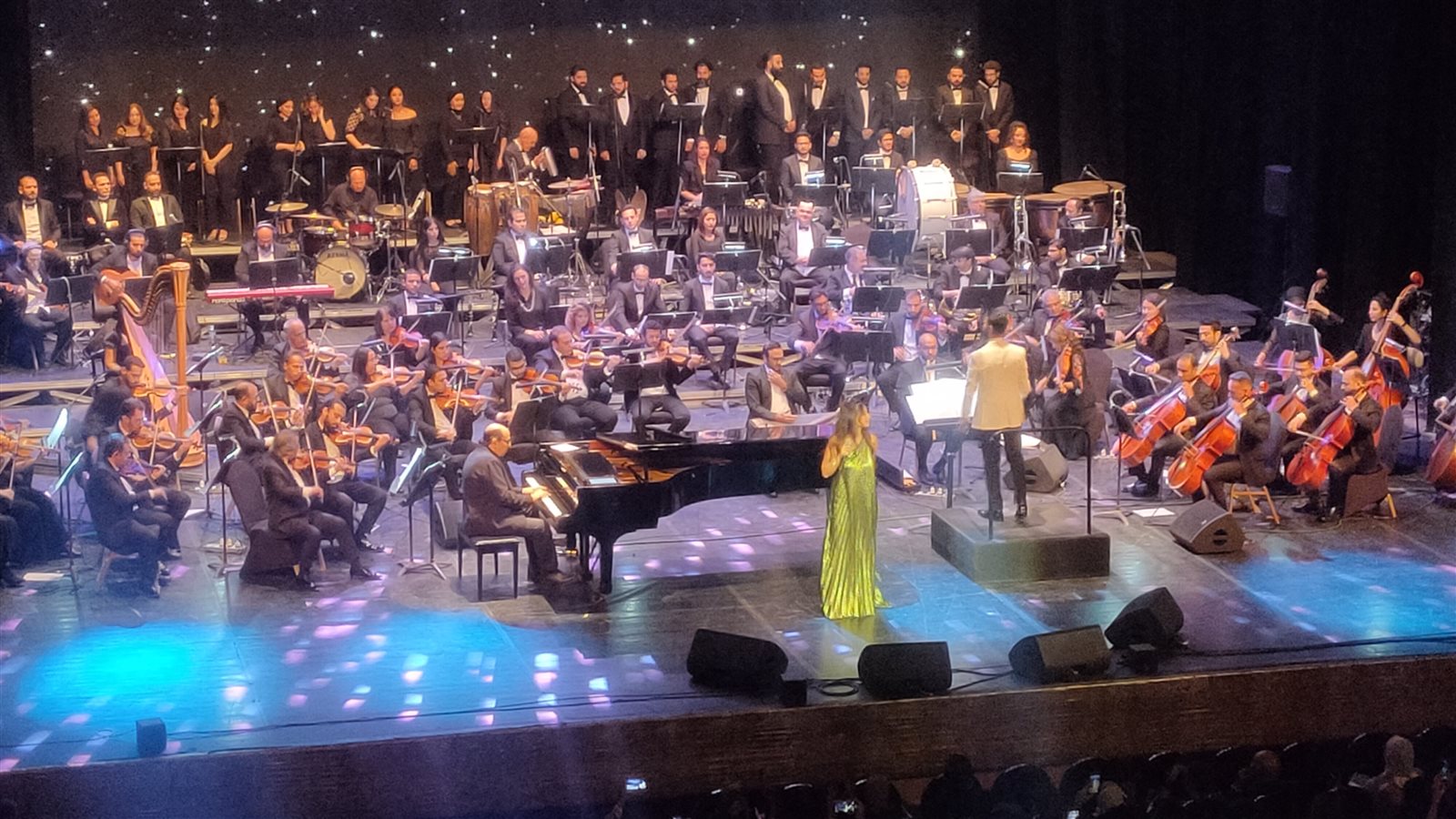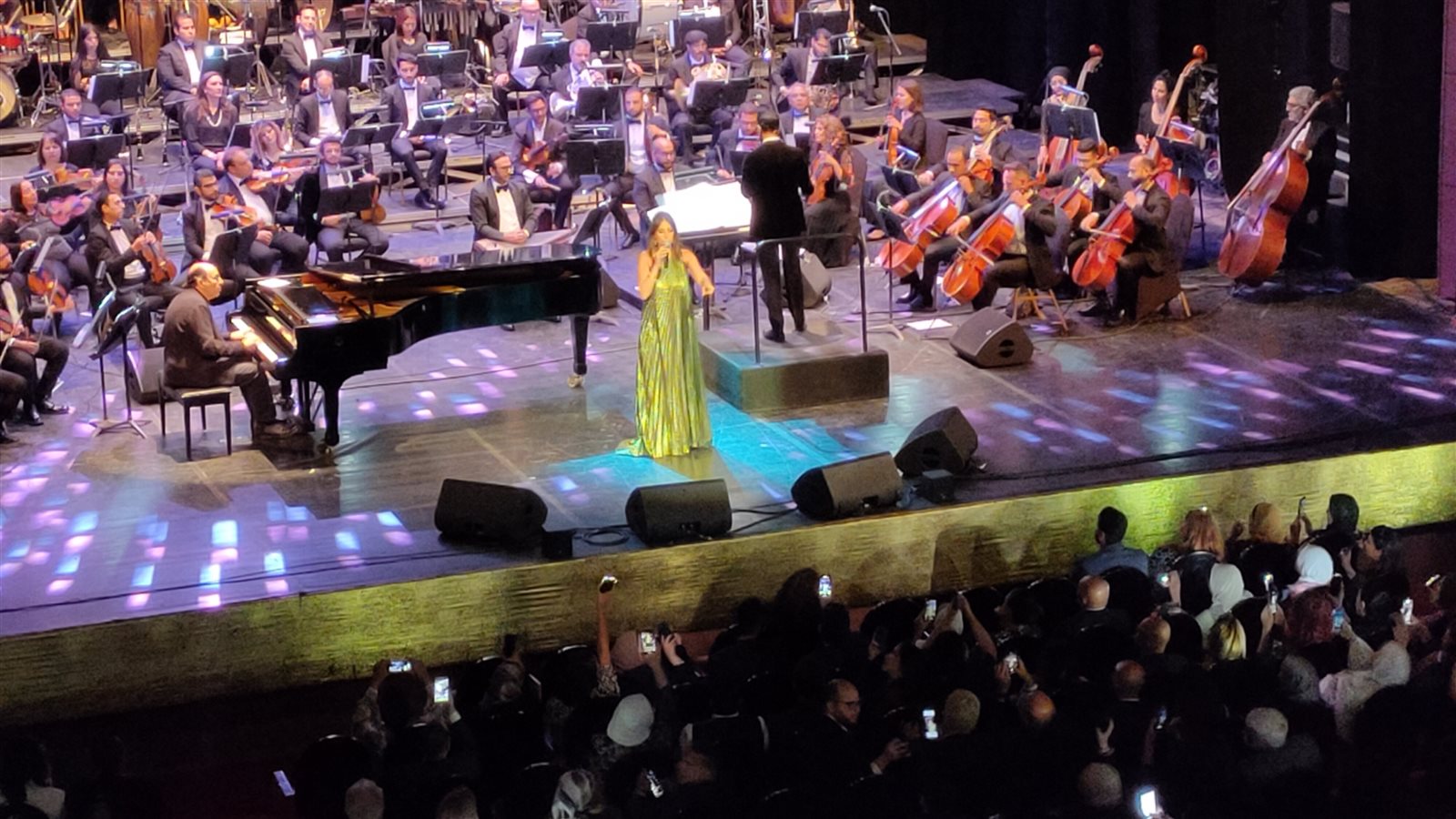 وتألقت بمجموعة من أعمالها الخاصة وضع الحانها الموسيقار اسامة رحبانى ووزعها قائد الحفل المايسترو احمد عويضة كان منها حلم ، يمكن حبيتك ، يا حبيبي ، ضلك حدي ، خلاص ، حبيبي خلاص ، قولي حبيبي ، مين اللي بيختار ، بعد سنين ، لا بداية ولا نهاية ، أول ما شوفته ، زمان ، بلد التناقض الى جانب احدث اعمالها بعنوان سلم علي مصر واهدتها لمصر وشعبها بالاضافة الى عدد من مؤلفات الموسيقى العربية الشهيرة منها طلعت يا محلا نورها ، حنا السكران وسهر الليالى ولو نبقى سوا باللغة الفرنسية والتى تفاعل معها الحضور .