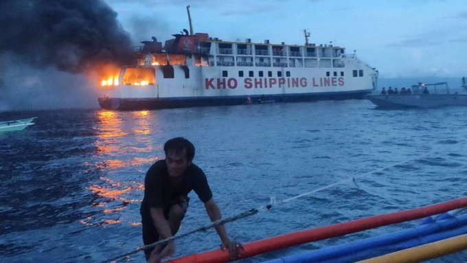 وقال خفر السواحل إن النيران اشتعلت في السفينة "M / V Esperanza Star" بمنطقة داون أثناء سفرها من مقاطعة سيكويجور إلى مقاطعة بوهول في وسط البلاد، مشيرا إلى أنها كانت تقل 65 راكبا و 55 من أفراد الطاقم.
