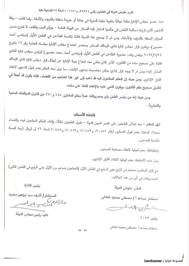 أوصت هيئة مفوضي الدولة المحكمة الادارية العليا، بقبول الطعن المقام من هيئة قضايا الدولة نيابة عن وزير الشباب والرياضة ومديرية الشباب والرياضة بالجيزة، والطعن المقام من المستشار مرتضى منصور، على الحكم الصادر ضده بعزله من رئاسة نادى الزمالك.
