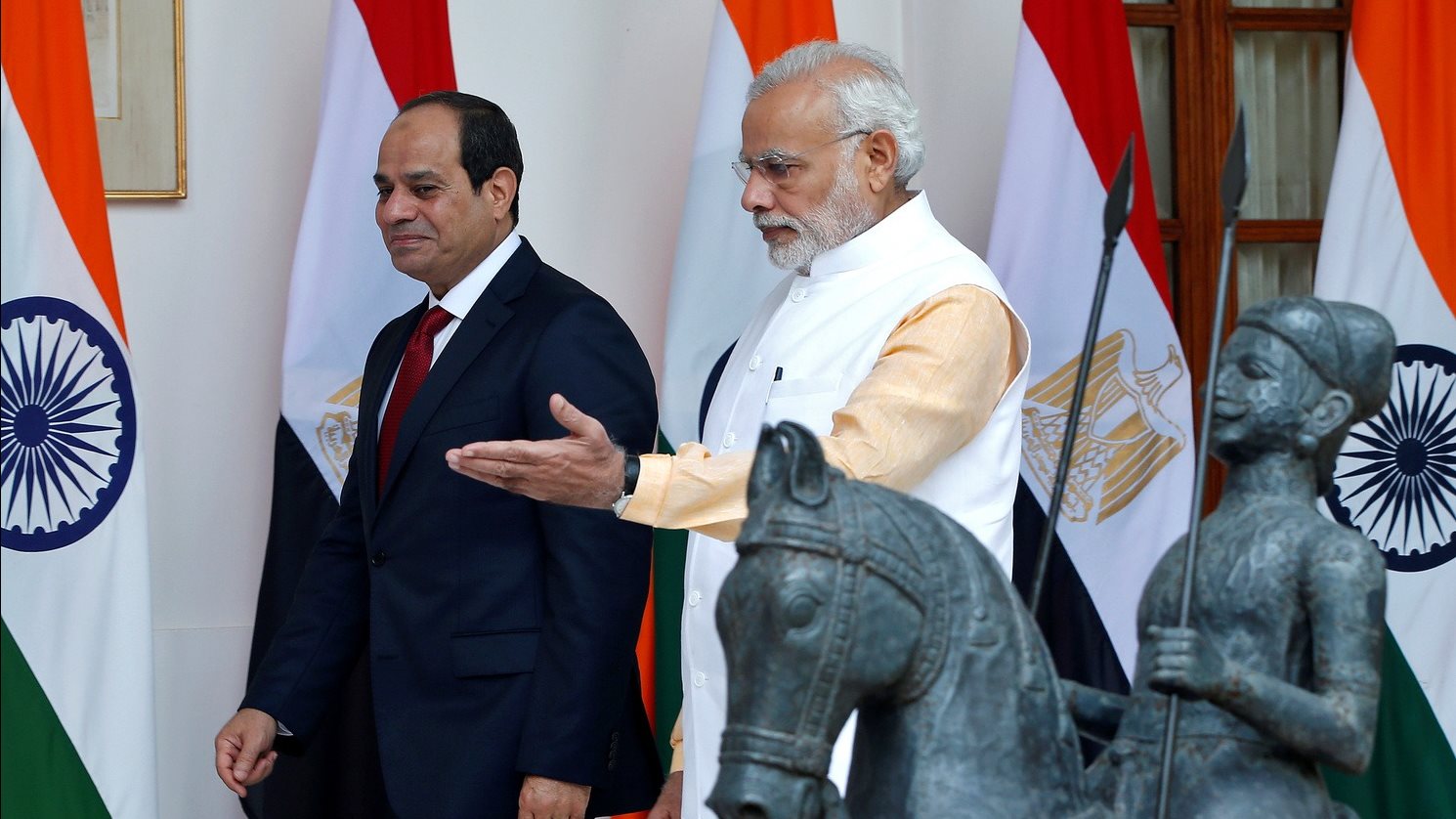 بعدما عاد الرئيس عبد الفتاح السيسي مساء الجمعة 23 يونيو إلى أرض الوطن، استقبل اليوم رئيس وزراء الهند ناريندرا مودى، بعد وصوله مصر في زيارة لمدة يومين، وتهدف الزيارة إلى تعزيز العلاقات التجارية والاقتصادية بين مصر والهند، وتستغرق الزيارة التى تستغرق يومين هي الأولى من نوعها إلى مصر منذ توليه مهام منصبه في عام 2014 حيث من المقرر أن يعقد مودي، خلال الزيارة سلسلة من اللقاءات مع عدد من كبار المسئولين المصريين كما يلتقى مع أبناء الجالية الهندية بالقاهرة.