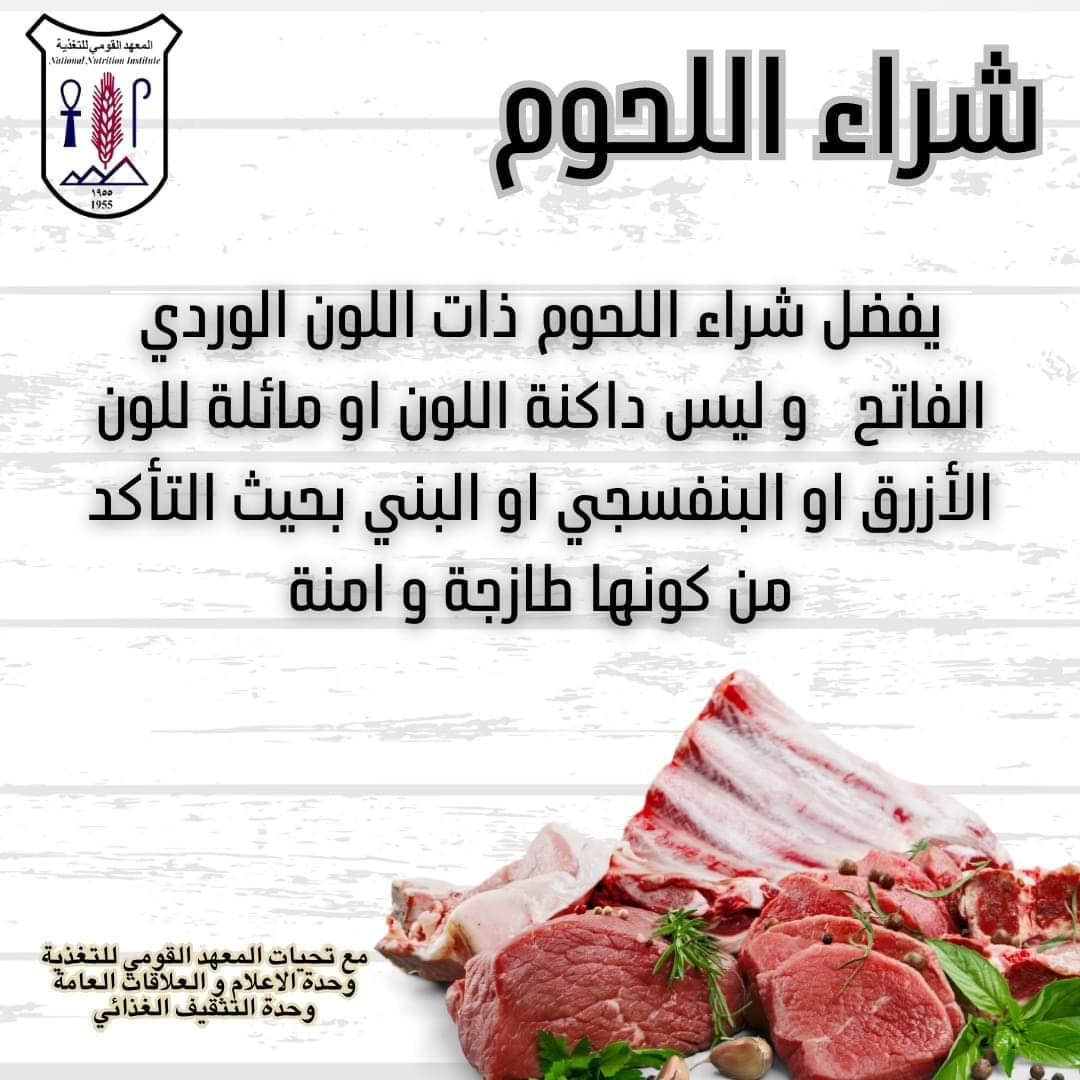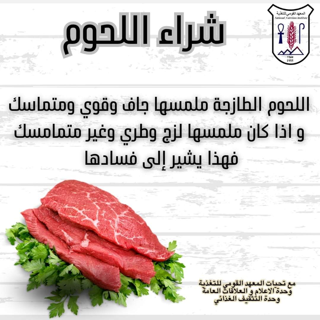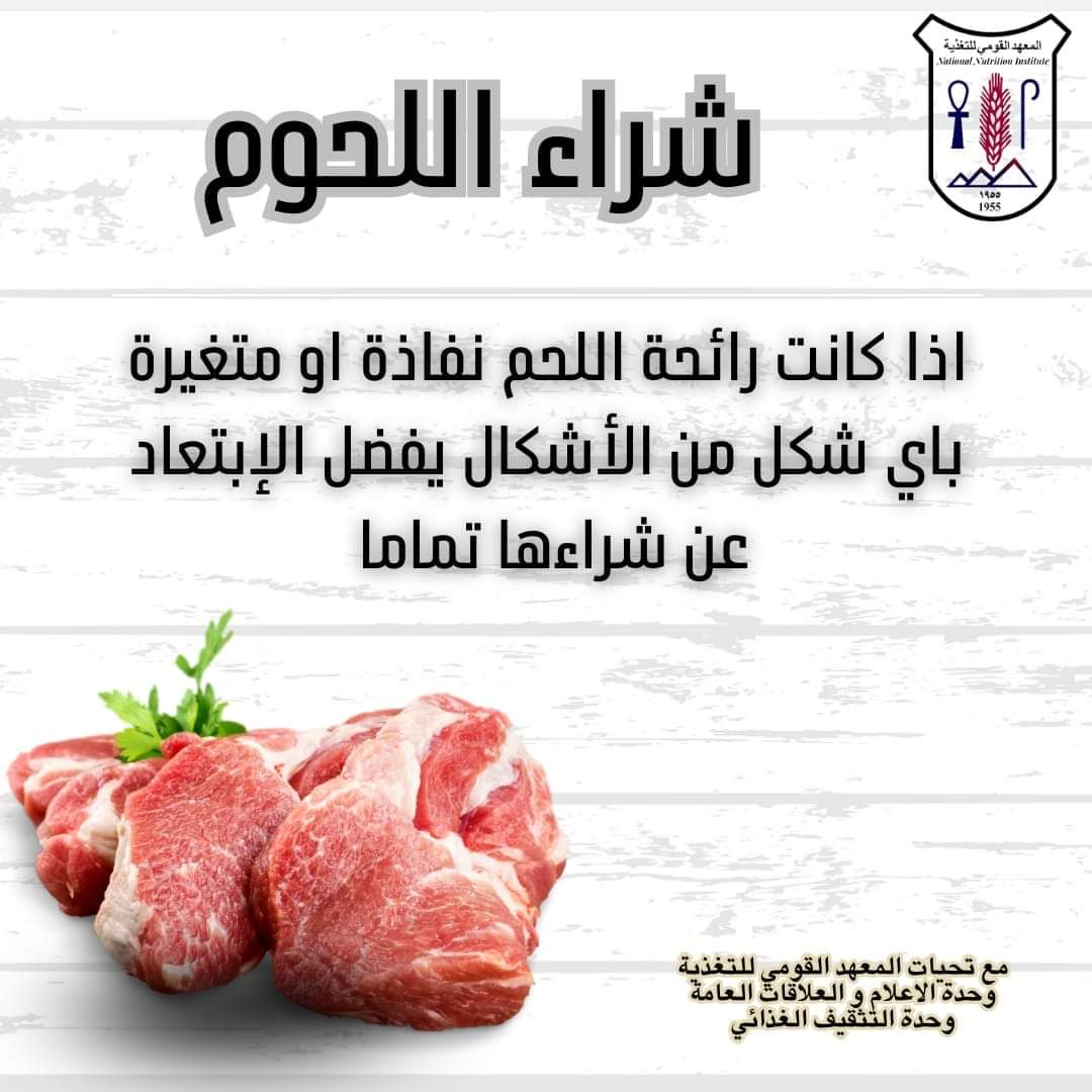 وشدد المعهد القومي للتغذية علي ضرورة الابتعاد نهائيا عن اللحوم ذات الرائحة النفاذة أو المتغيرة بأي شكل من الأشكال .