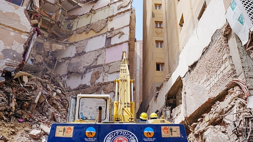 وبدأت الواقعة عندما تلقت غرفة عمليات المحافظة بلاغا من حي المنتزه أول حول انهيار أجزاء كبيرة من عقار شرقي المحافظة.