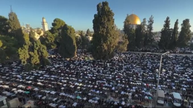 وذكرت الوكالة الأردنية أن تكبيرات العيد علت إيذانا بحلول أول أيام العيد وسط حشود كبيرة من المصلين، بالتزامن مع حملة اعتقالات واسعة شنتها قوات الاحتلال الإسرائيلية بحق المصلين أثناء خروجهم من الأقصى.