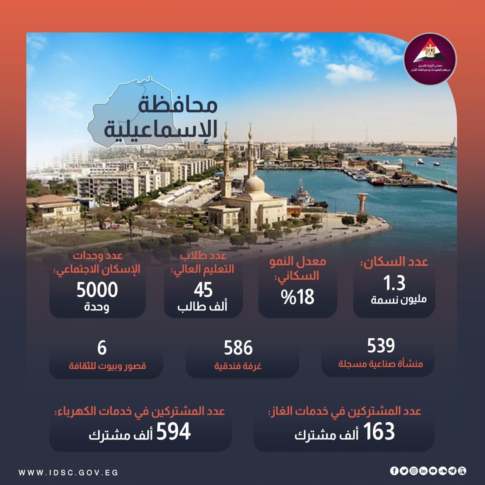 نشر مركز المعلومات ودعم اتخاذ القرار بمجلس الوزراء إنفوجرافا عبر صفحته الرسمية على موقع التواصل الاجتماعي “فيس بوك” بشأن مشروعات إقليم القناة، والذي يضم محافظات الشرقية وجنوب سيناء والسويس وشمال سيناء وبورسعيد والإسماعيلية.