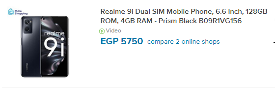 ويتوفر هاتف ريلمي Realme 9i في السوق المصرية بسعر يبدأ من 5 آلاف و750 جنيهًا، علمًا بأن السعر يختلف حسب النسخة وأيضًا حسب المتجر .