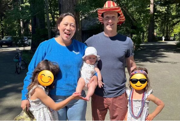 وفي الصورة يظهر مارك زوكربيرج إلى جانب زوجته برسيلا تشان التي تحمل رضيعتها وإلى جوارهما ابنتيهما الصغيرتان، ولكن الغريب في الأمر أن ابنتي زوكربيرج ظهرتا في الصورة وعلى وجهيهما رمز تعبيري يخفي ملامحهما تماما.
