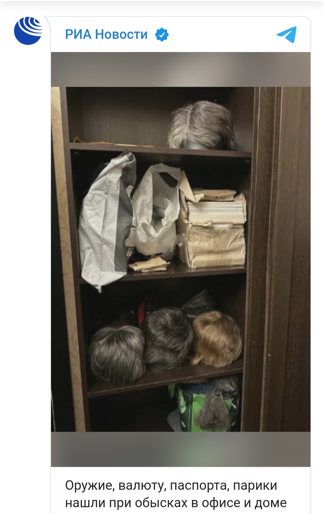 عثر جهاز الأمن الفيدرالي الروسي أثناء تفتيشه لمكتب ومنزل قائد مجموعة فاجنر، يفغيني بريغوجين، على شعر مستعار وأسلحة ومبالغ كبيرة من المال وجوازات سفر.