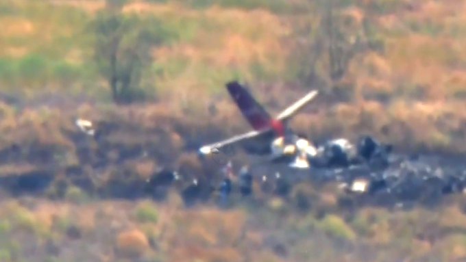 وأظهرت لقطات فيديو الطائرة محترقة تمامًا ومتفحمة وسط الحقول، فيما كانت سيارات الشرطة متمركزة في موقع الحادث.