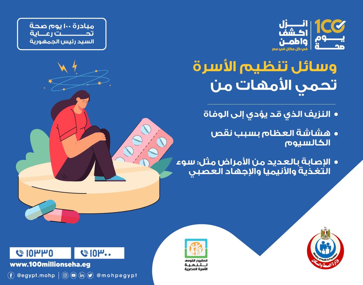وقالت وزارة الصحة والسكان ، إن وسائل تنظيم الأسرة ، تحمي الأمهات من التالي :-