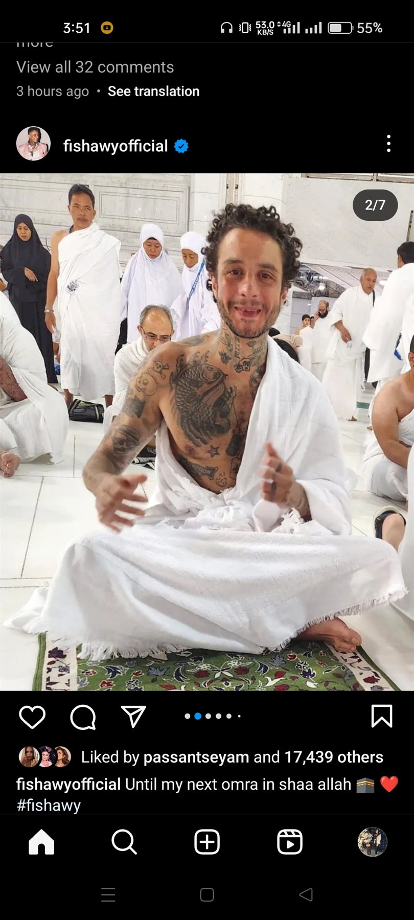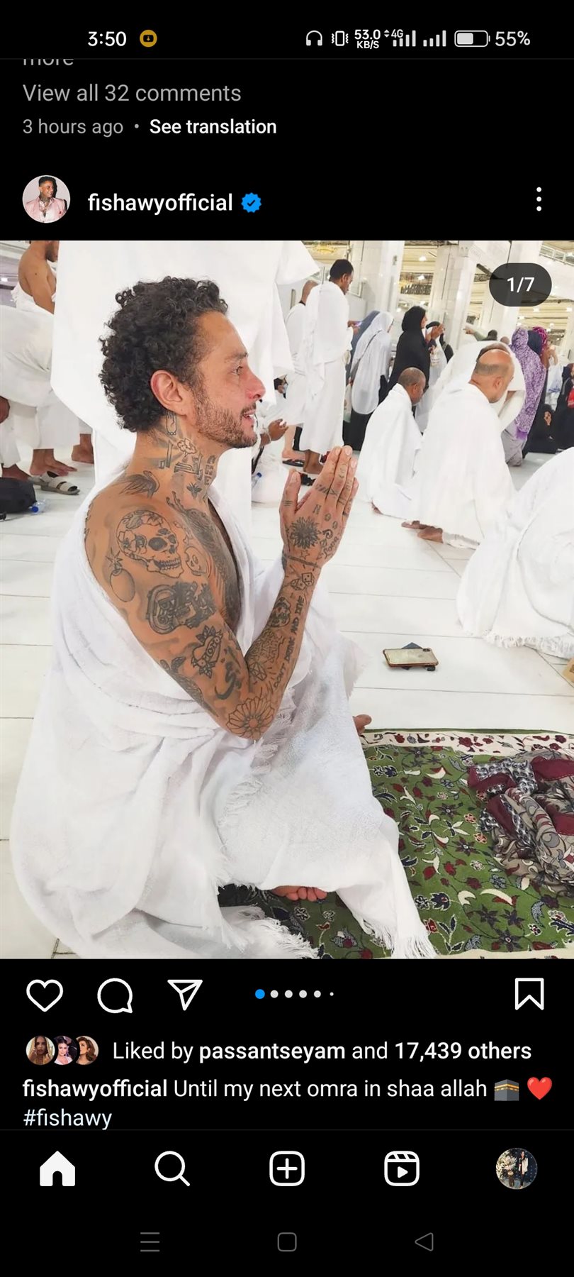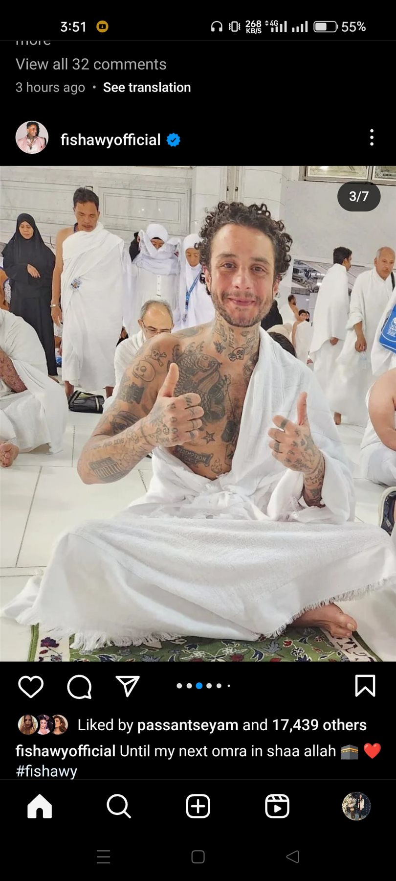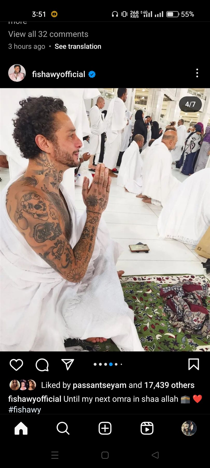 وظهر أحمد الفيشاوي ، في الصور أثناء أداء مناسك العمرة من أمام الكعبة الشريفة بملابس الحج.