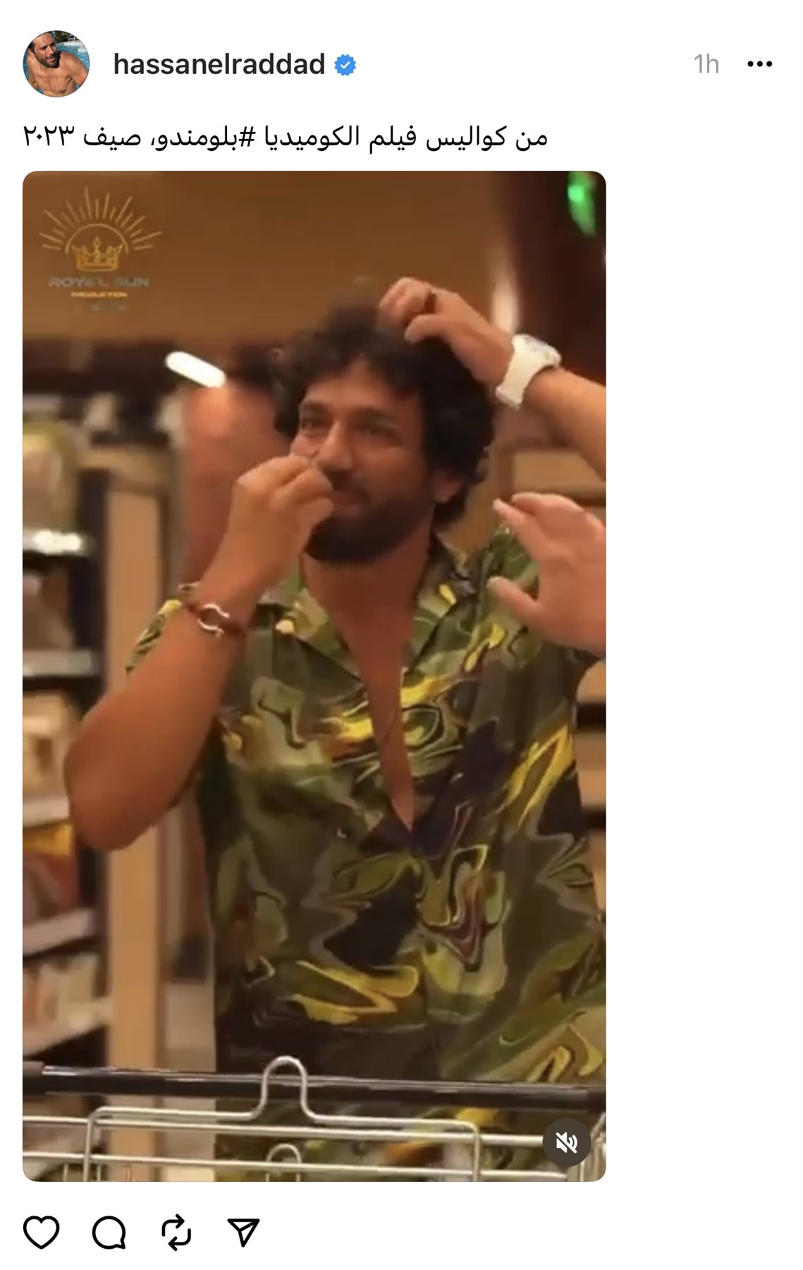 نشر الفنان حسن الرداد فيديو من كواليس فيلمه الجديد الذي يحمل اسم “بلومندو”، عبر حسابه الشخصي بموقع التواصل الاجتماعي “ثريدز”.