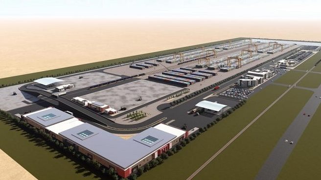 ويشمل هذا المشروع محطة لتحميل القطارات مكونة من 5 خطوط وساحات تخزينية للواردات والصادرات وساحة للكشف الجمركى وبوابات الكترونية لدخول وخروج شاحنات الحاويات ومباني للفحص والمعاينة ومبنى مخزن بضائع مشتركة ومبانى خدمية.