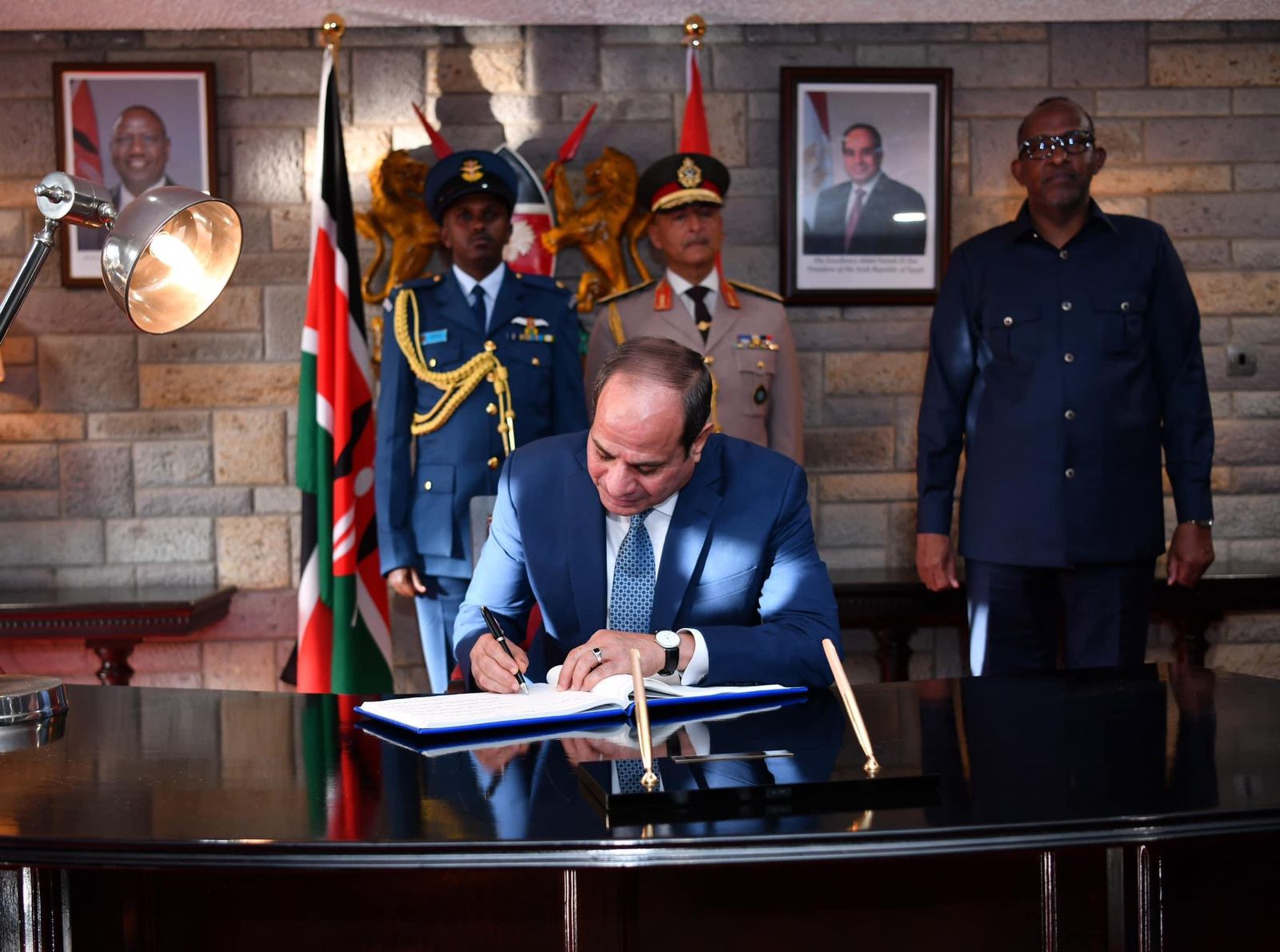 وجه الرئيس عبد الفتاح السيسي كلمة للرئيس روتو رئيس كينيا وللشعب الكيني الشقيق في سجل الزائرين بمستهل زيارته لكينيا للمشاركة في القمة التنسيقية للاتحاد الإفريقي والتجمعات الاقتصادية الإقليمية.