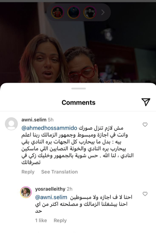 وجاء تعليق أحد المتابعين: مش لازم تنزل صورك وانت في إجازة ومبسوط وجمهور الزمالك ربنا اعلم بيه، بدل ما بيحارب كل الجهات، لنا الله، حس شويه بالجمهور وخليك زكي في التصرفات.