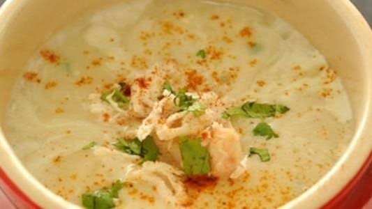 أرجعي الشوربة إلى القدر وسخنيها على النار لمدة 5 دقائق قبل التقديم.