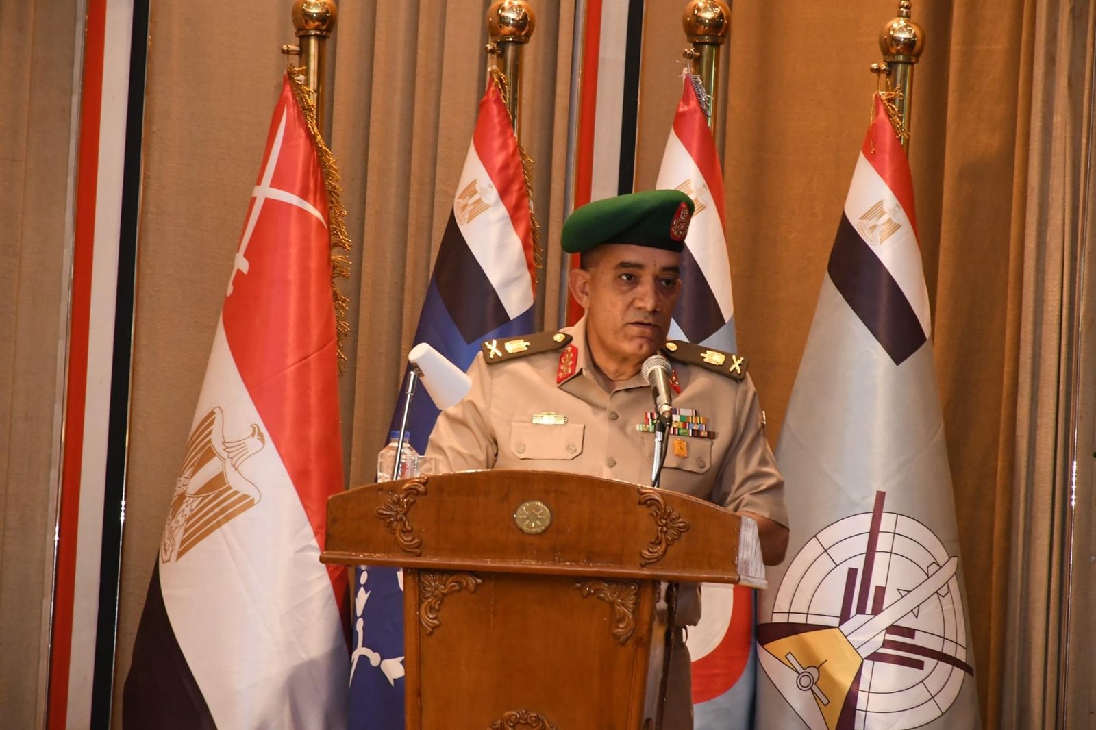 وألقى اللواء أ ح خالد أحمد شوقي مساعد وزير الدفاع كلمة نيابة عن الفريق أول محمد زكى القائد العام للقوات المسلحة وزير الدفاع والإنتاج الحربى أكد فيها أن رجال القوات المسلحة ماضون بإرادة قوية وعزيمة لا تلين في حماية الوطن وصون مقدساته، مقتدين بسيرة الرسول الكريم محمد صلوات الله عليه وسلامه في الصدق والإخلاص والتضحية والصبر في مواجهة التحديات ، والعمل الجاد بإيمان وثقة في المولى عز وجل للوفاء بالمهام والمسئوليات المكلفين بها.