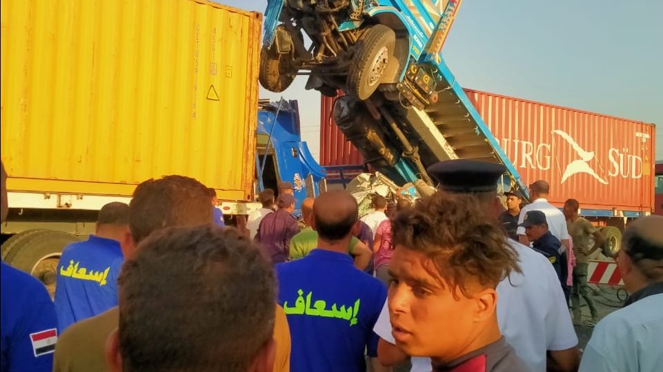 وقالت هيئة الإسعاف المصرية ، حادث مفجع ومؤسف ، لميكروباص ركاب أطاحت به سيارة نقل ثقيل محملة بعشرات الأطنان من الأسمنت، ليتحول في ثواني معدودة إلى كتلة من الحديد مشوهة المعالم، ليستقر المشهد على سيارة النقل الثقيل وهي جاثمة على حطام الميكروباص وكأنها ترفض حتى أن ترأف بحال الضحايا بداخله.