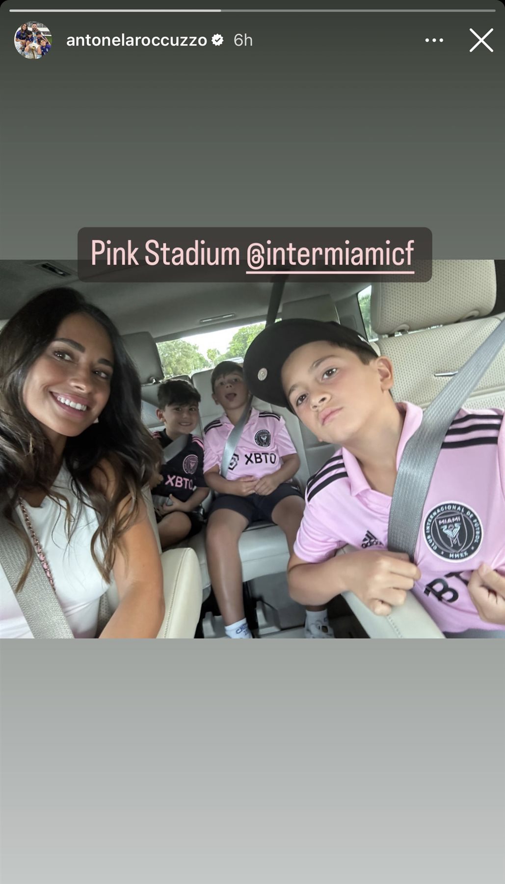 وظهرت زوجة ميسي برفقه ابنائها وهم يرتدون تيشيرت إنتر ميامي، عقب فوز الفريق علي نظيره أتلانتا يونايتد، برباعية نظيفة، في المباراة التي أقيمت بينهما، ضمن منافسات كأس الدوريات.