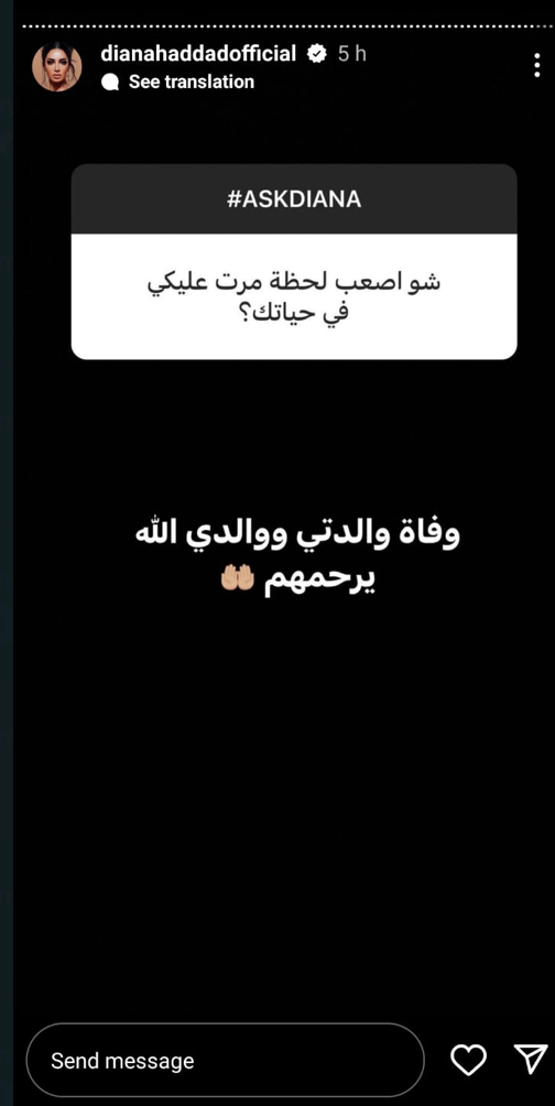 وردت ديانا قائلة: وفاة والدتي ووالدي الله يرحمهم.