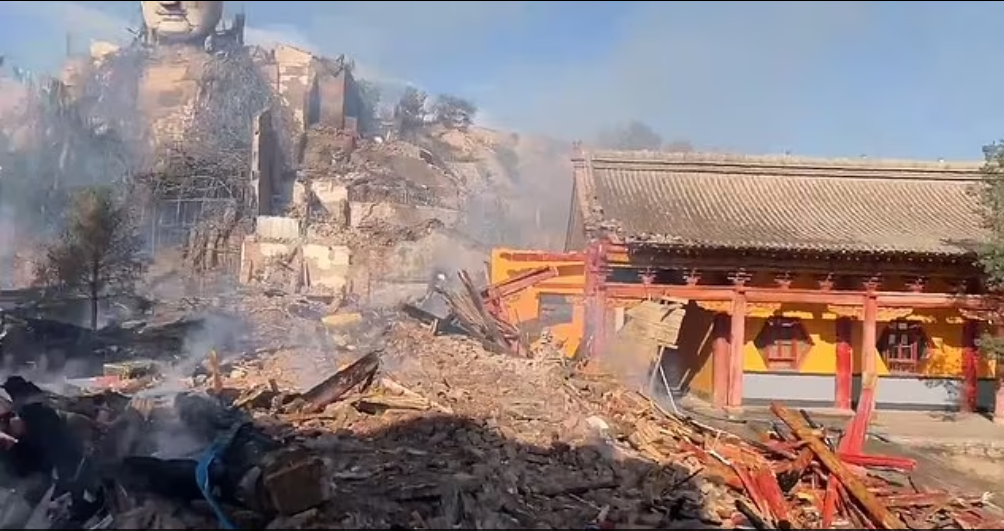 اندلع حريق مدمر في معبد بوذا العظيم في شاندان، بمقاطعة قانسو في الصين، ما أدى إلى احتراق تمثال بوذا العملاق البالغ من العمر 1500 عام.
