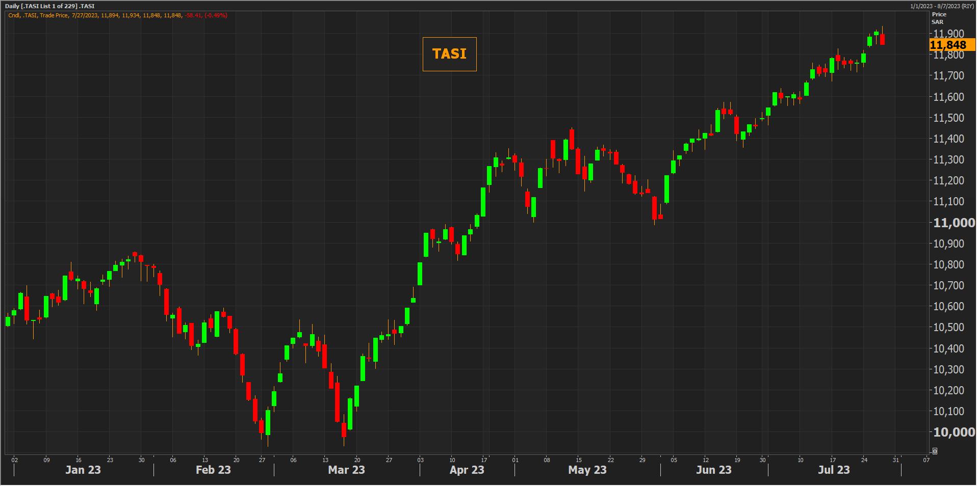 وعلى مدار الأسبوع، ارتفع المؤشر السعودي بنحو 0.8% مسجلاً رابع مكاسب أسبوعية على التوالي وأعلى إغلاق أسبوعي في 9 أشهر.
