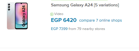 ويتوفر هاتف سامسونج Galaxy A24 في السوق المصري بسعر يبدأ من 6 آلاف و 420 جنيه مصري، علما بأن السعر يختلف حسب النسخة وأيضا حسب المتجر.
