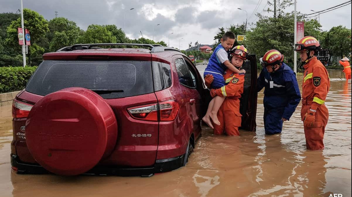 انتشر مقطع الفيديو الذي لم تتعد مدته الدقيقة لحفل زفاف العروسين وسط مياه الفيضانات بينما ضرب إعصار دوكسوري الصين والفلبين خلال الأيام الماضية.