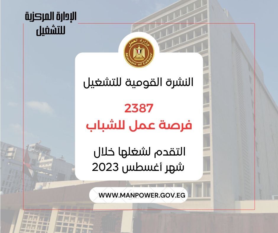 وفرت وزارة العمل 2387 فرصة عمل في 36 شركة قطاع خاص داخل 9 محافظات، في عدد من التخصصات، منها لذوى القدرات الخاصة، برواتب تبدأ من 3000 جنيه شهريا، فضلا عن التأمين الصحي والاجتماعي، وذلك للتقديم عليها خلال شهر أغسطس 2023 الجاري.