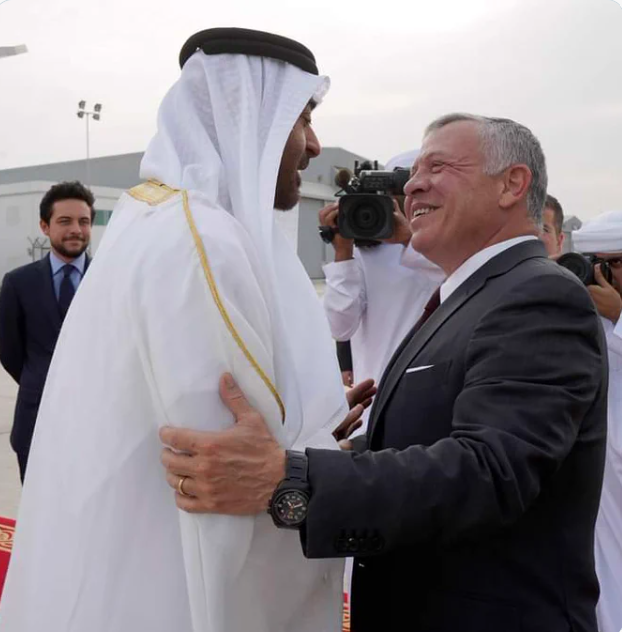 وقال العاهل الأردني: "شرفنا أخي العزيز الشيخ محمد بن زايد آل نهيان بزيارة إلى بلده الثاني الأردن. ما يجمع البلدين الشقيقين والشعبين العزيزين من محبة وأخوة يجعلهما نموذجا للعلاقات العربية الأصيلة وعنوانا لتعزيز العمل العربي المشترك، فهو الهدف والغاية".
