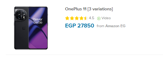 ويتوفر هاتف وان بلس OnePlus 11 في السوق المصرية بسعر يبدأ من حوالي 27 آلاف و850 جنيه مصري، علما بأن السعر يختلف حسب النسخة وأيضا حسب المتجر .