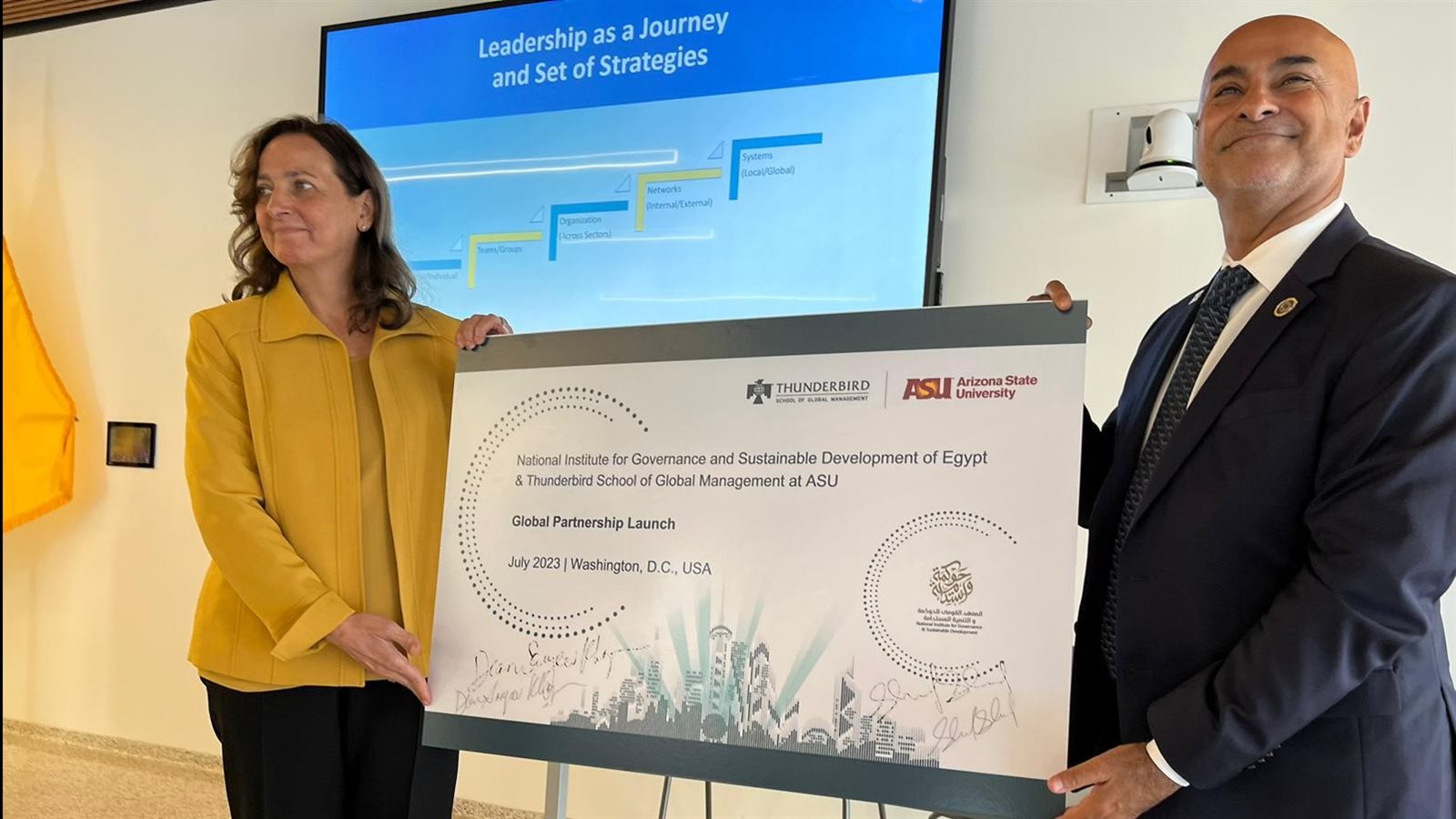 اختتم المعهد القومي للحوكمة والتنمية المستدامة -الذراع التدريبي لوزارة التخطيط والتنمية الاقتصادية- فعاليات البرنامج التدريبي "الحوكمة المبتكرة في العصر الرقمي" بالشراكة مع كلية ثندربيرد للإدارة الدولية التابعة لولاية أريزونا وذلك بمقر الكلية بالعاصمة الأمريكية واشنطن.