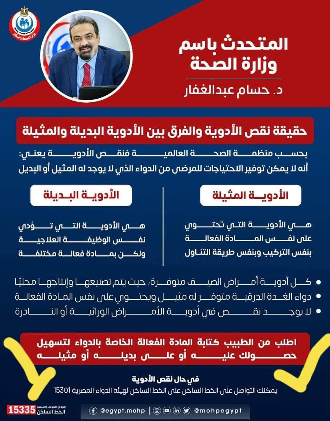 أعلنت النائبة إيرين سعيد، عضو لجنة الصحة بمجلس النواب، استجابة وزارة الصحة لطلبها والخاص بأزمة نقص الأدوية من خلال البيان الذي تم نشره على الصفحة الخاصة بالوزارة ، والذي طالبت فيه الأطباء بكتابة العلاج بالاسم العلمي.
