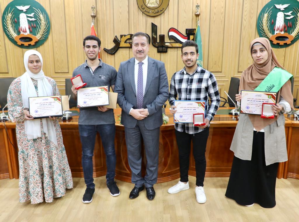 وقام رئيس الجامعة بتكريم الطلاب ، وتسليمهم شهادات إتمام التدريب العملي بكليات الجامعة والذي استمر علي مدار شهر ، حيث استقبلت الجامعة خلال شهر يوليو 19 طالب وطالبة من جامعات العراق والأردن واليمن وفلسطين تلقوا تدريبا مكثفا بكليات ومعامل الجامعة .