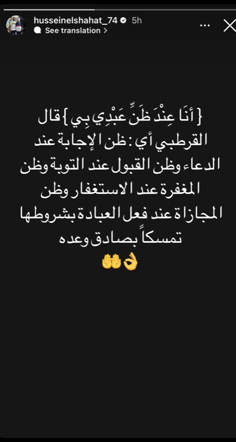 نشر لاعب النادي الأهلي حسين الشحات منشورًا غامضًا عبر حسابه بموقع انستجرام.