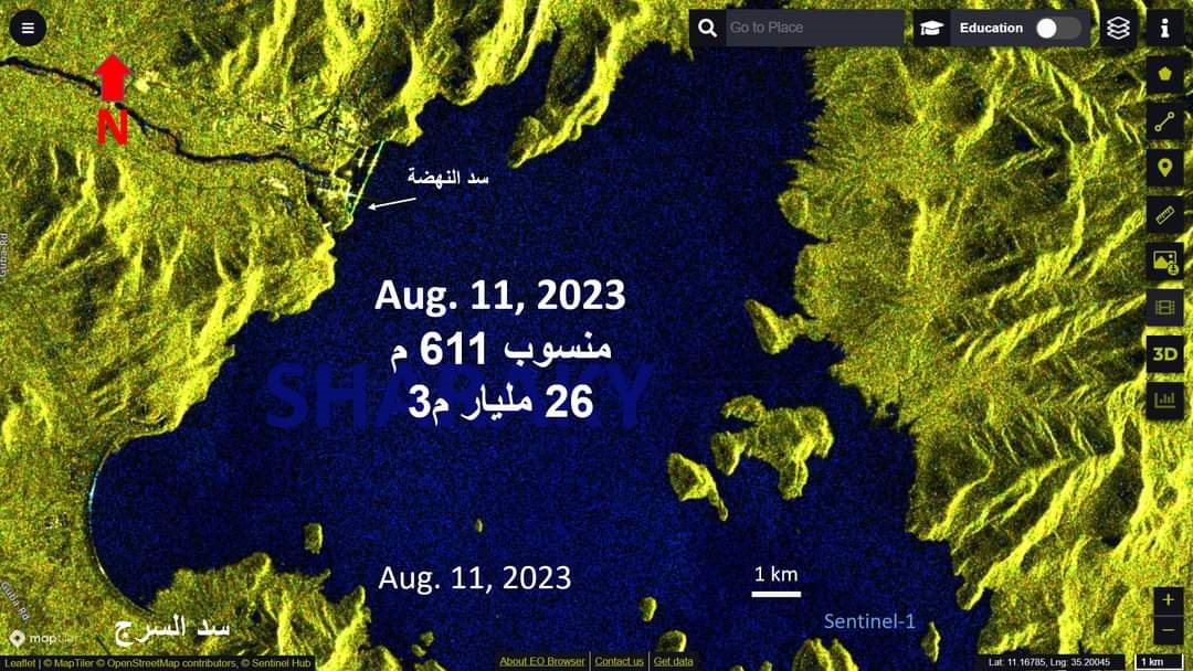 في هذا الصدد، قال الدكتور عباس شراقي، أستاذ الجيولوجيا والموارد المائية بجامعة القاهرة، إن منسوب بحيرة سد النهضة، وصل إلى 611 متر فوق مستوى سطح البحر، وذلك بعد تخزين 9 مليار متر مكعب من المياه خلال الأسابيع الأربعة الماضية، منذ بدء الملء الرابع في 14 يوليو الماضي، وحتى أمس الجمعة 12 أغسطس، موضحا أن معدل الأمطار، متوسط حتى الآن، أي بلغ 500 مليون متر مكعب في اليوم، خلال أغسطس الجاري، وعادة ما يقل عن 400 مليون متر مكعب خلال سبتمبر.